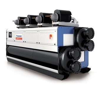 Агрегат внутренней установки для охлаждения воды. Оснащен безмасляными центробежными компрессорами, работающими с хладагентом R134a, электронным терморегулирующим вентилем, кожухотрубным конденсатором и кожухотрубным испарителем затопленного типа. Опорная рама, каркас и панели из оцинкованной стали увеличенной толщины с порошковым эпоксидным покрытием. Функционально гибкий и надежный агрегат; легко адаптируется к различным тепловым нагрузкам благодаря инверторным технологиям и точному регулированию температуры. Революционная конструкция компрессора: магнитные подшипники и цифровое регулирование скорости вращения ротора позволяют достичь невиданных ранее значений эффективности при частичной нагрузке.